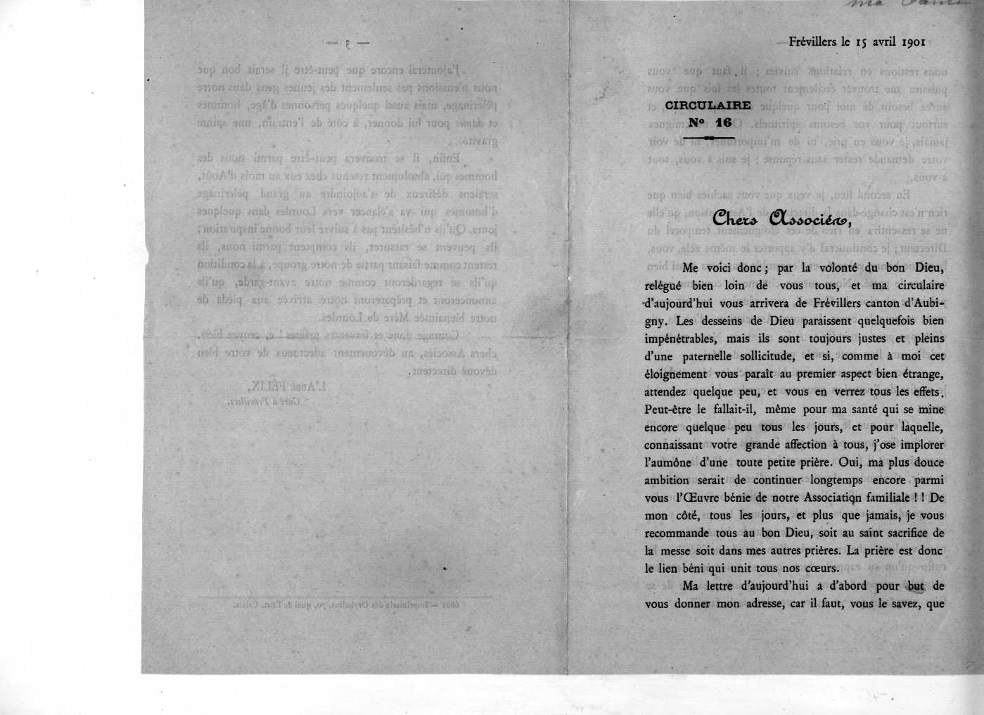 circulaire du 15-04-1901