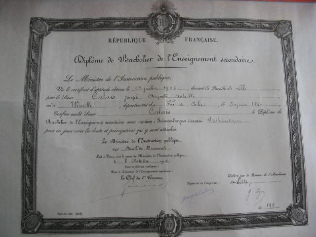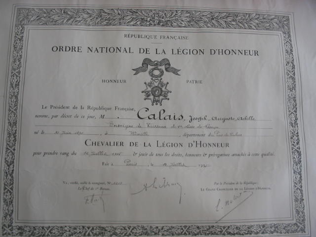 arrière-petit-fils (Branche Calais) de Léonard Calais et de Catherine